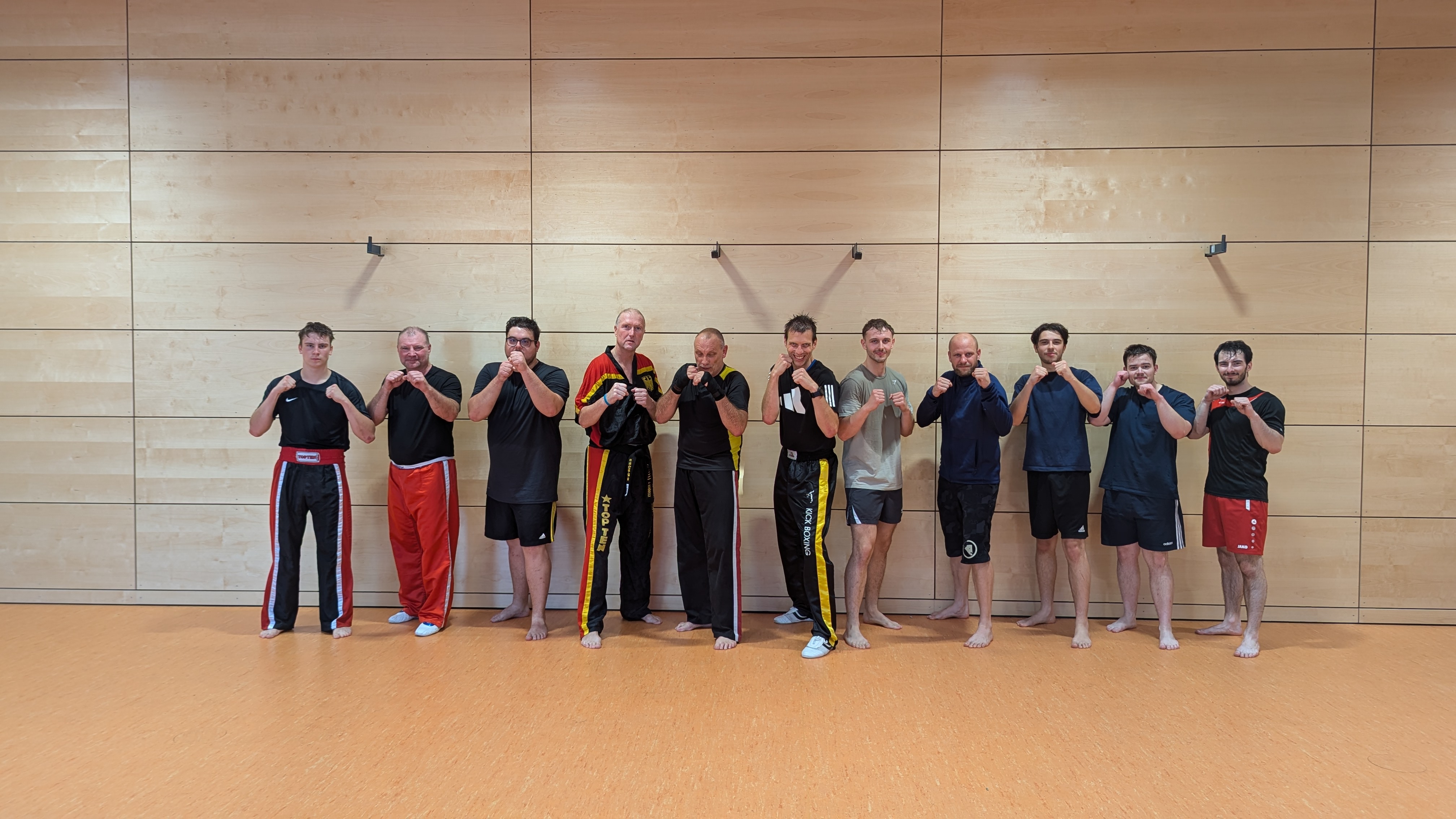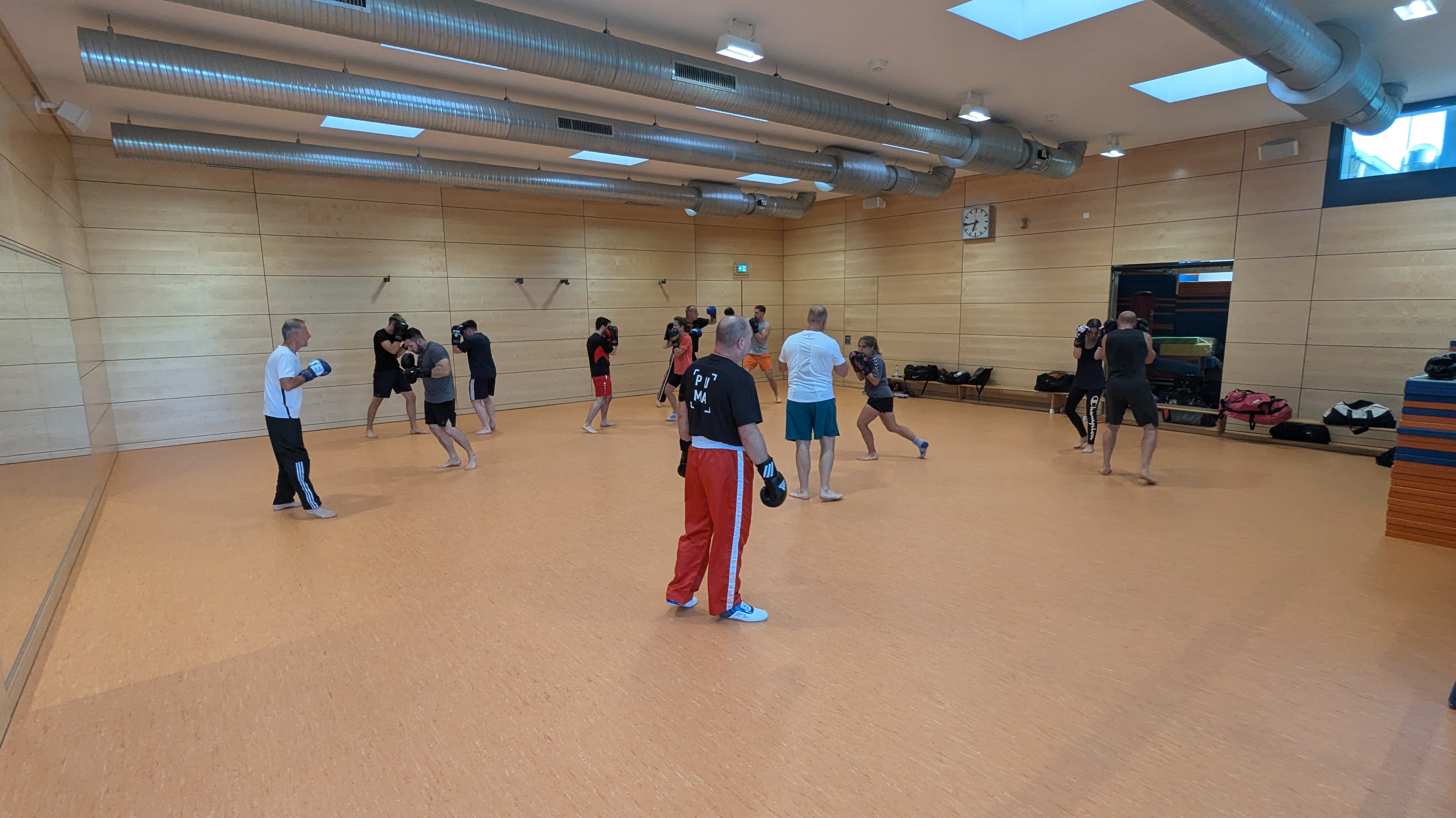 Danach werden Box- und Kicktechniken trainiert. Wenn diese Techniken sitzen machen wir auch leichtes Sparring.